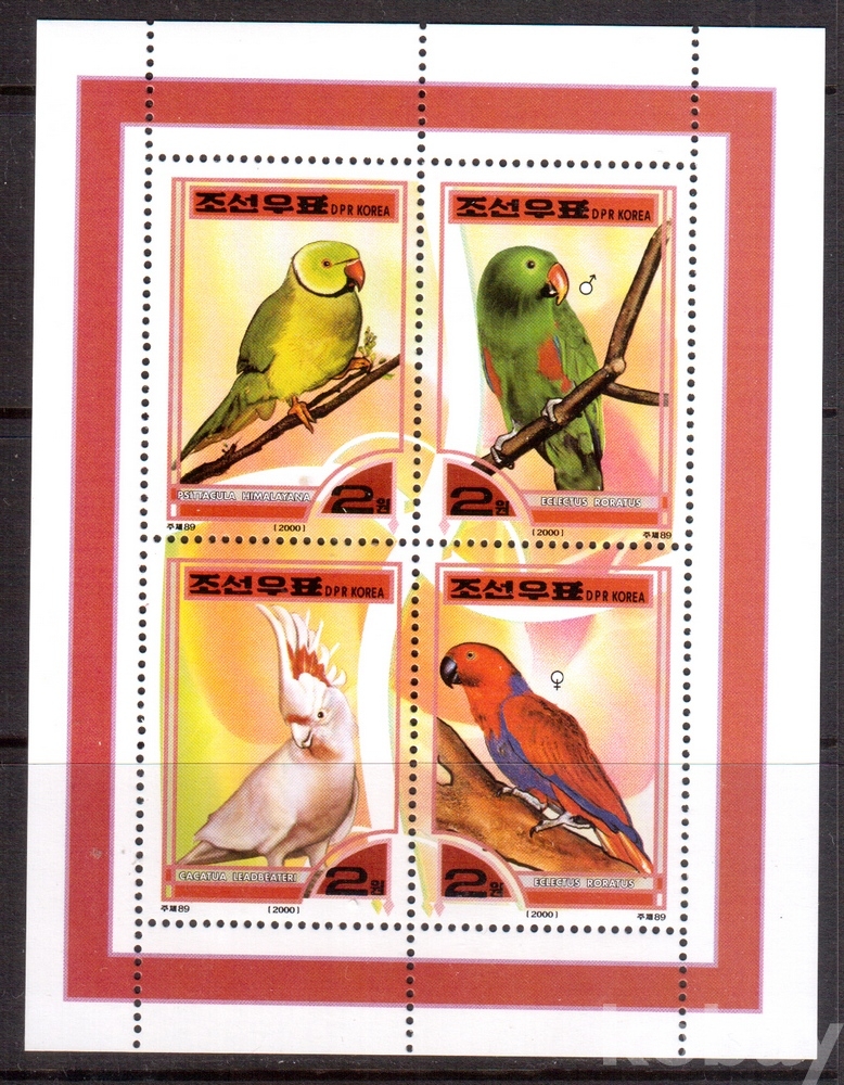 (조류) 북한 2000.2.10 앵무새 sheet of 4 MNH