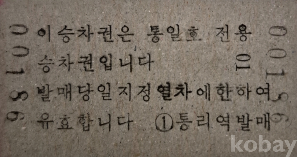 통일호 승차권(초기형광권) 통리-춘양 일반입니다.