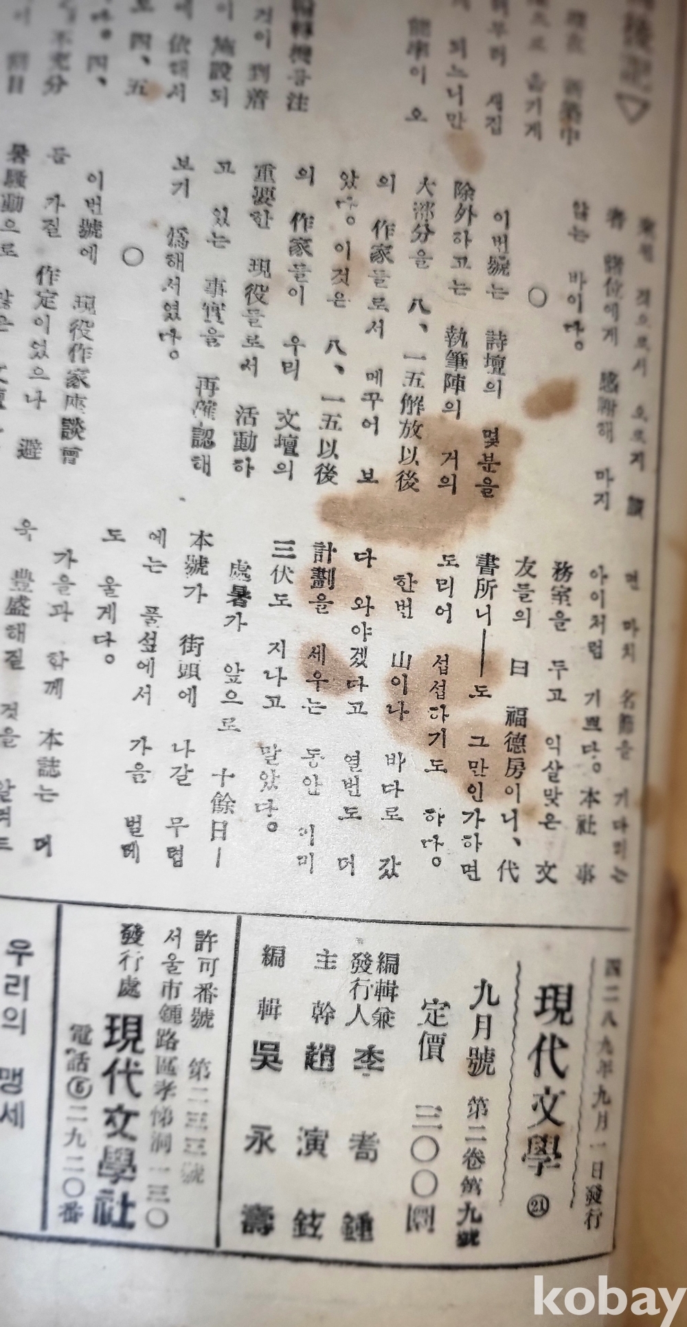 화가 이준 표지화 그림이 함께하는 "현대뮨학" 1956년 발행입니다,