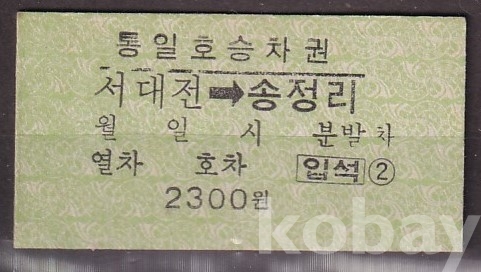 - 미사용 통일호 승차권 " 서대전 ▶ 송정리 " 2300원