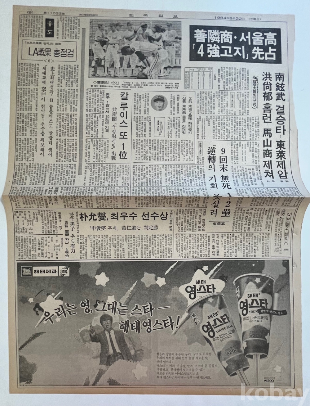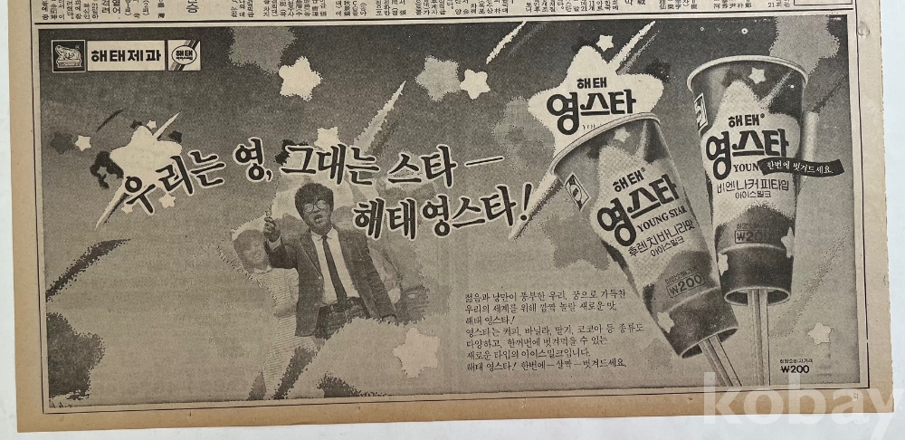 해태제과 아이스크림 광고가 실린 1984년 한국일보 낱장입니다.