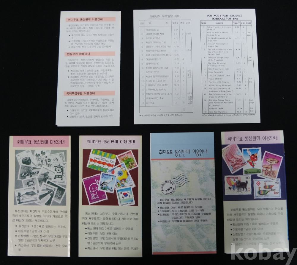 안내카드(6매) / 1991~1995년 우표발행계획 / 실제물품 사진 / 251106-2-6