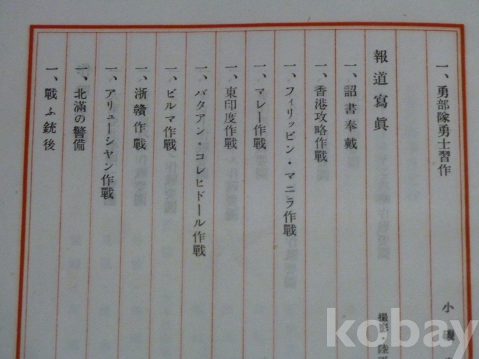 태평양전쟁 초기 일본군의 동남아 침공 관련사진집. 오래된 관계로 세월의 흔적 있으나 비교적 양호.