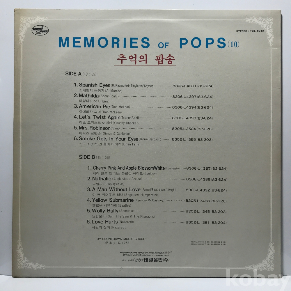 LP 82,350-42 MEMORIES OF POPS(10) ORIGINAL ARTISTS . 자켓 EX+ 알판 EX+ 83 년제작 국내반