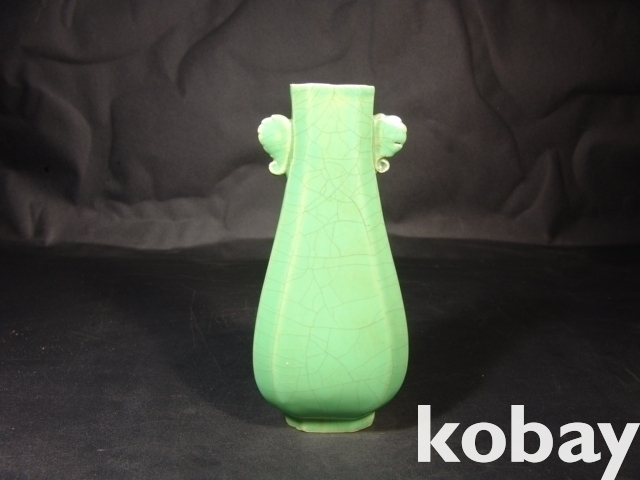 do7834 시요녹유(柴窯綠釉) 박태(薄胎) 쌍이팔각편병(偏甁) /시(柴) 관지