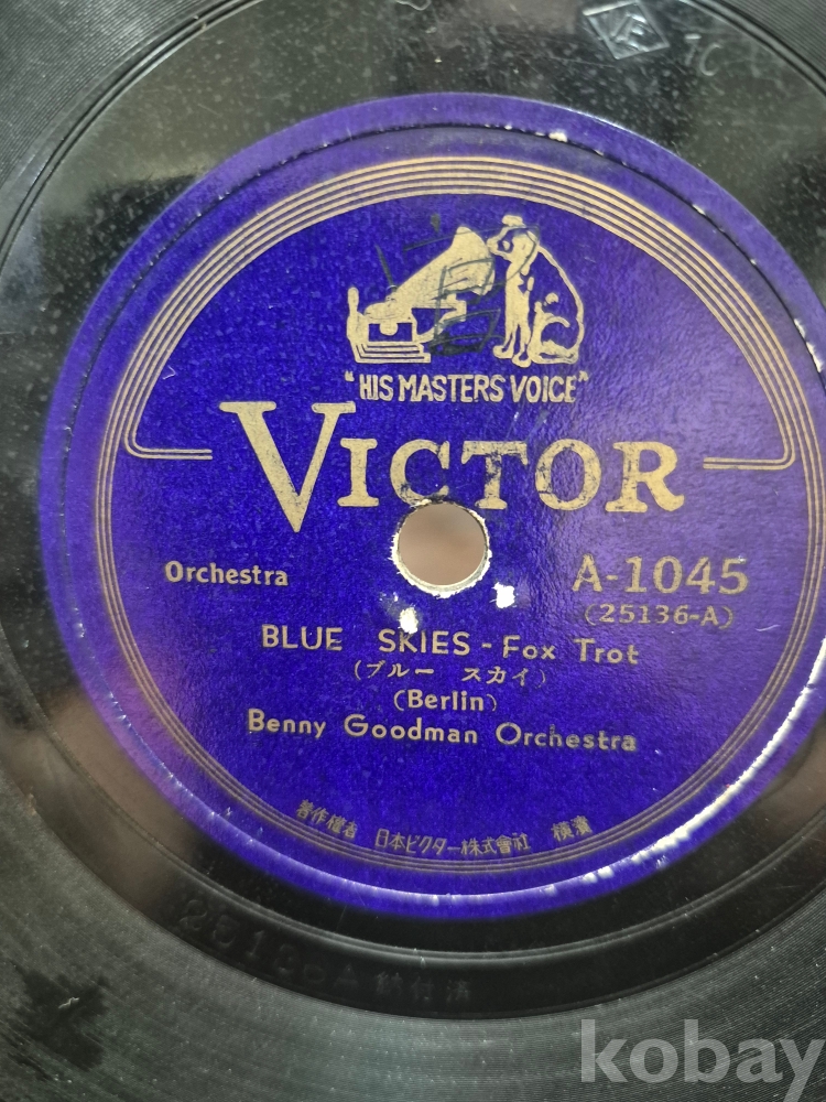 빅터 레코드사 베니 굿맨 오케스트라 BLUE SKIES 유성기 돌판 1점 1 25*25