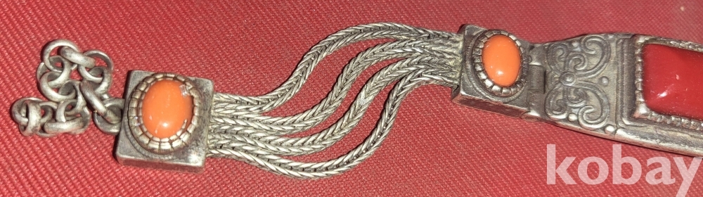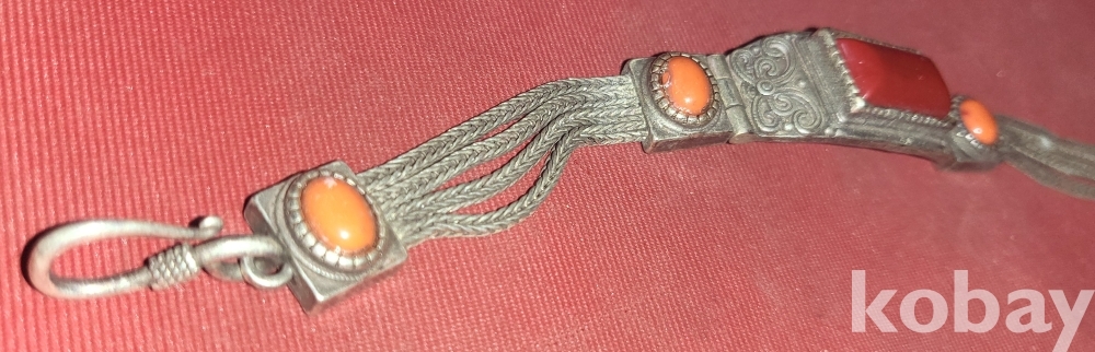 루비와 주황색 보석으로 완성된 성인 여성용 팔지입니다,