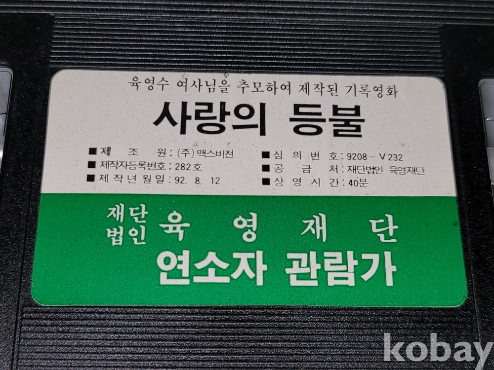 빈티지 희귀한 1992년 육영재단 육영수 여사님을 추모하여 제작된 기록영화 사랑의 등불 비디오테이프입니다.