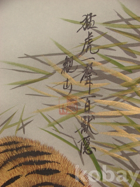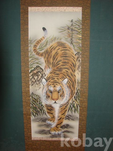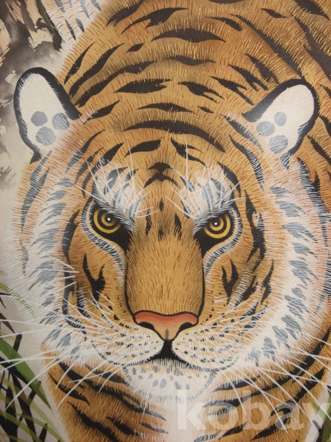 비단에 그린 관산의 호랑이 그림 소전지 족자(104×40.5)입니다.