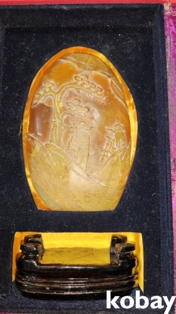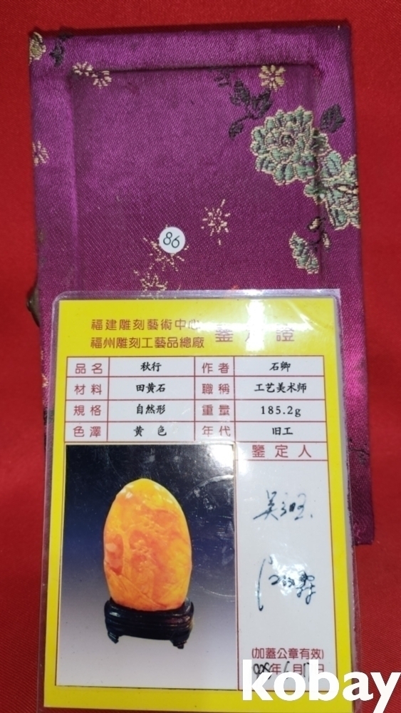 복주조각공예품총창 감정증(福州彫刻工藝品總廠 鑒定證) 수림.교량 신선문 전황석 조각품입니다,