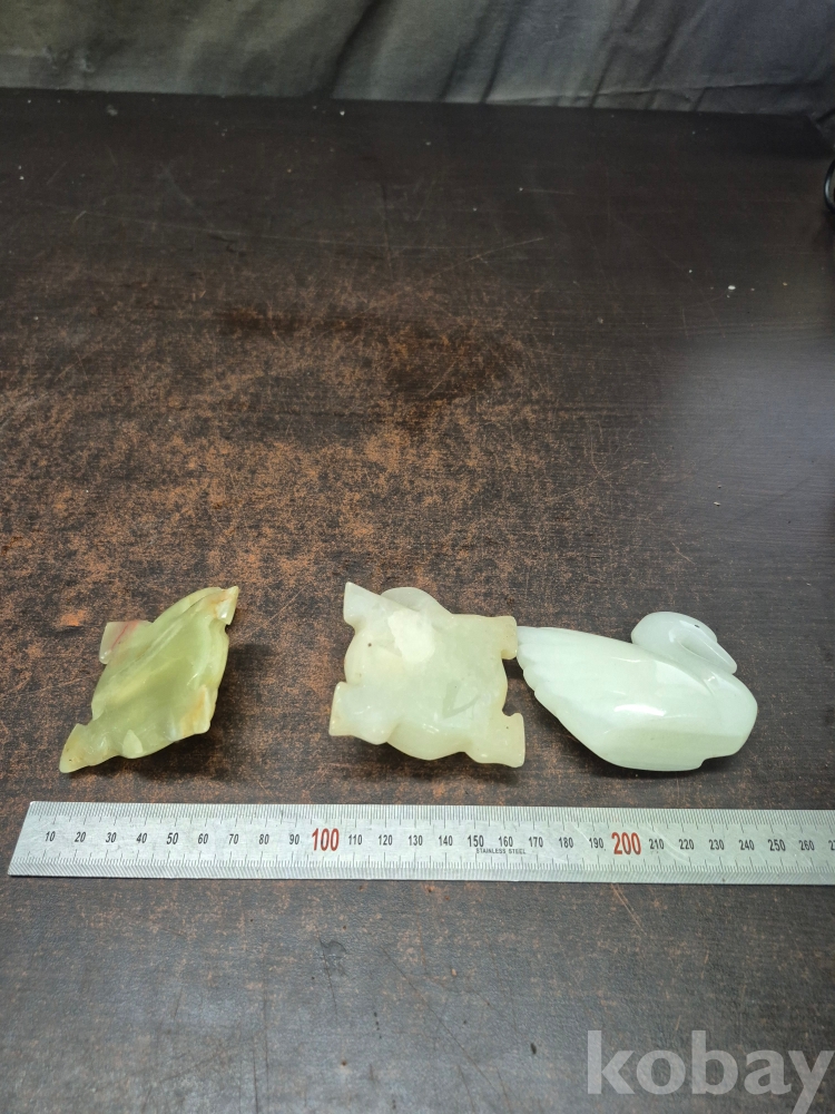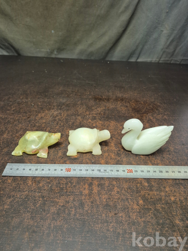 옥으로 만든 거북이 2점과 백조 1점 3점 일괄 8*7*3.5
