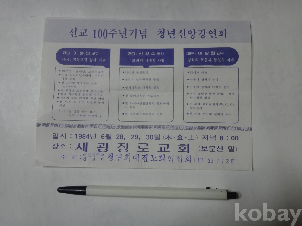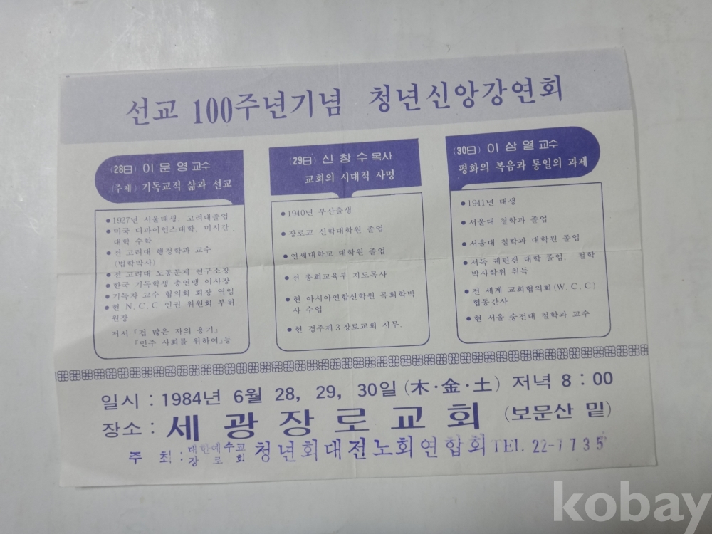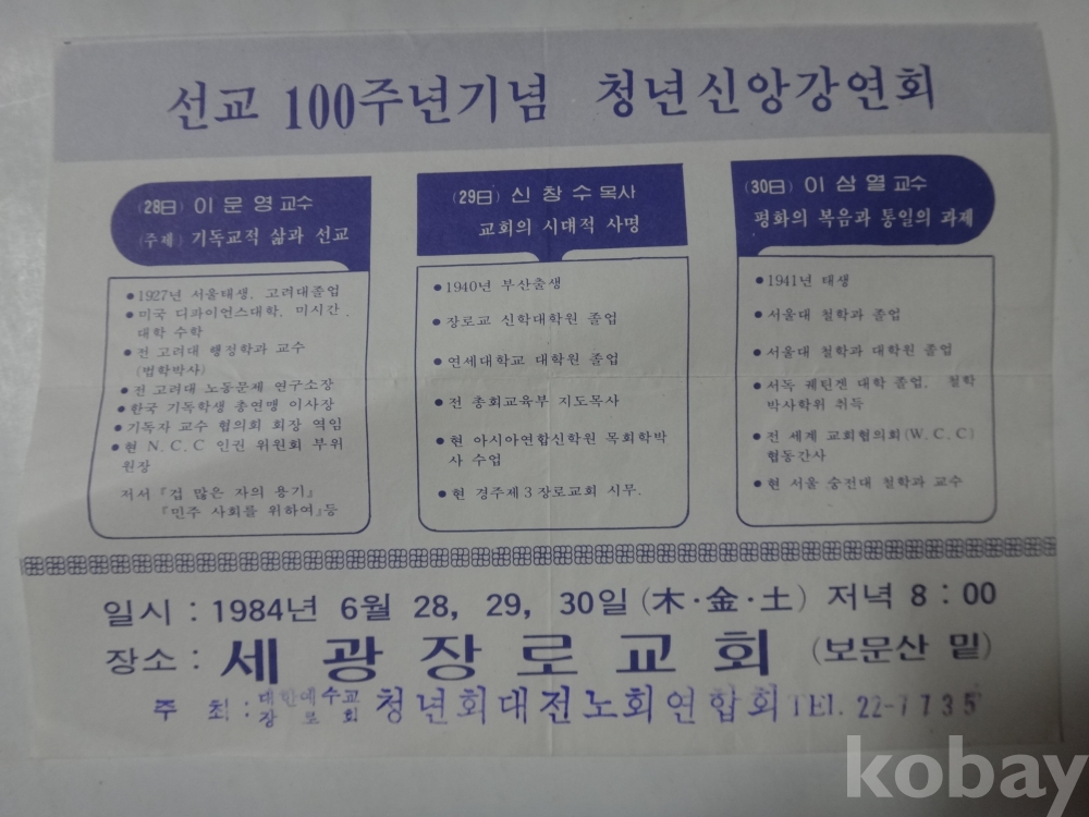 '선교 100주년 기념 - 청년신앙 강연회 (1984년, 청년회 대전노회 연합회)