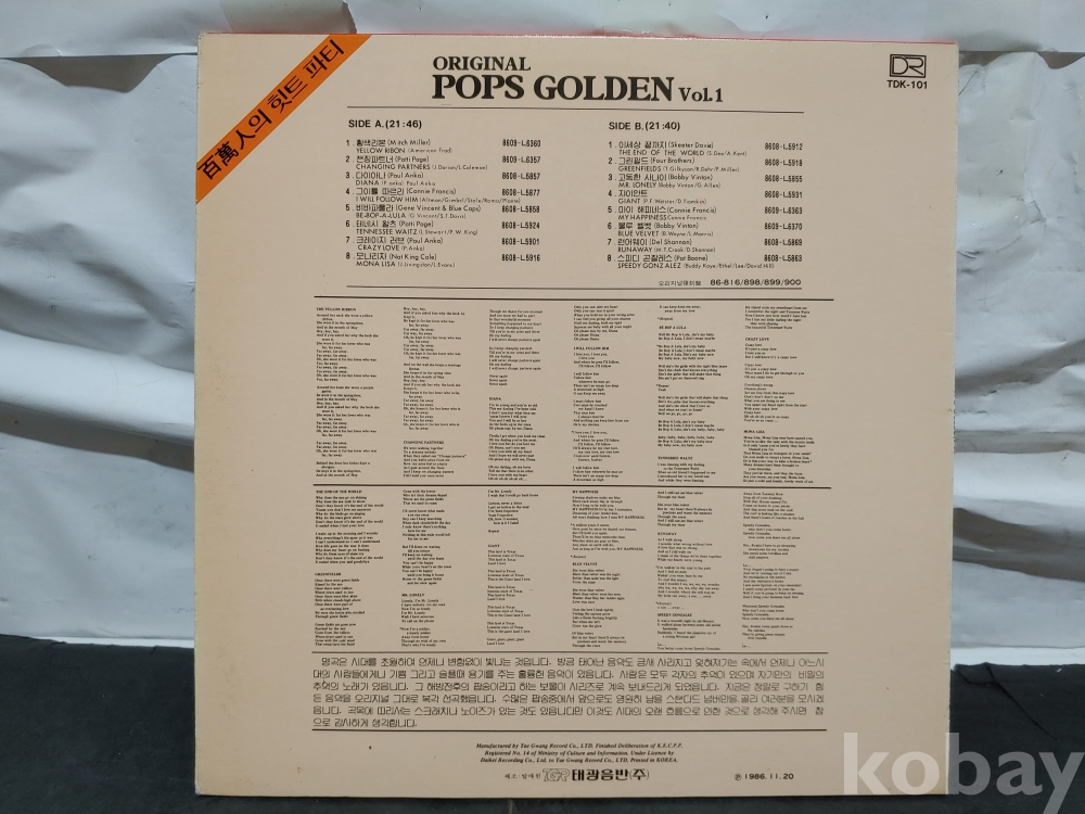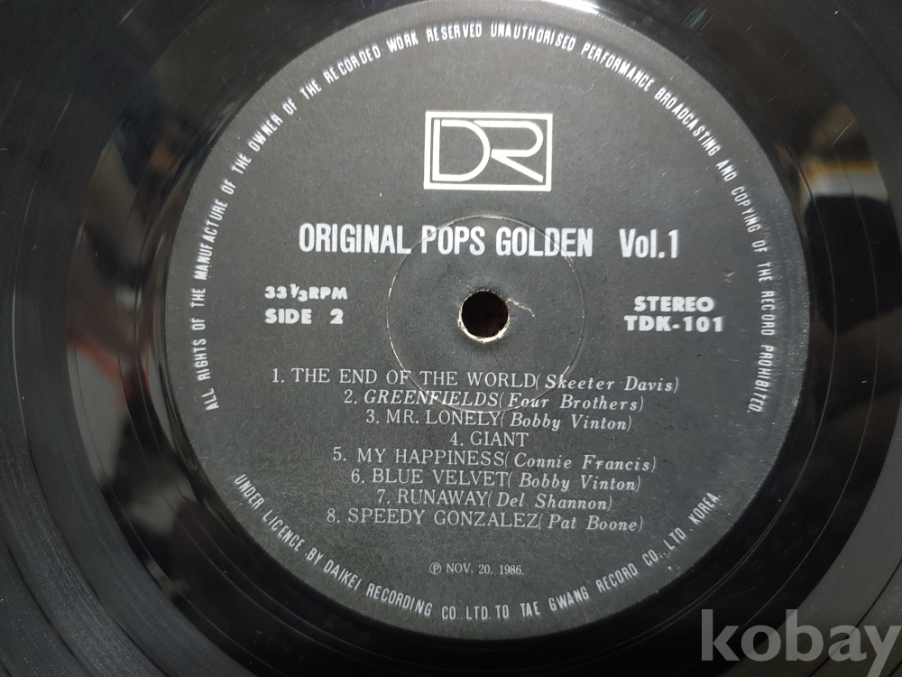 ""ORIGINAL POPS GOLDEN Vol 1 LP판""