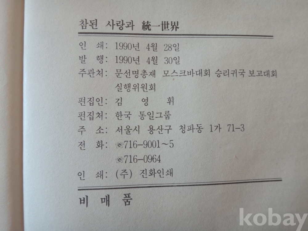 참된 사랑과 통일세계 - 문선명총재 모스크바대회 승리귀국 보고대회 연설 (1990년, 한국 통일그룹)
