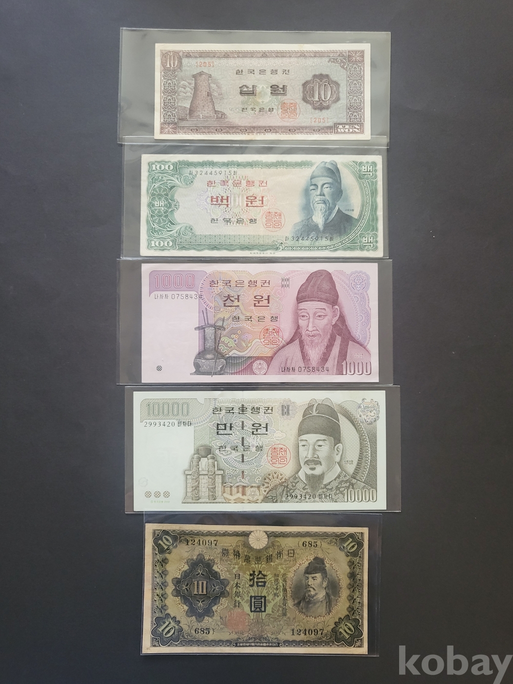 [근대사 화폐 기획전] 한국은행권 만원 등 5매 일괄