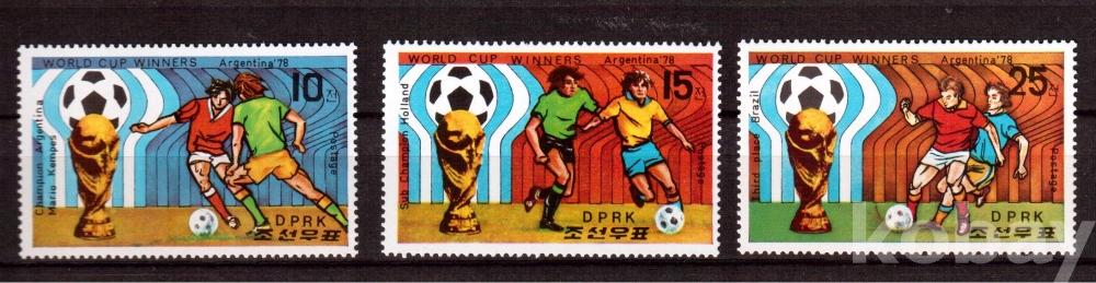 (월드컵,축구) 북한 1978.12.15 제11차 세계축구선수권대회 우승컵쟁취자들 3완 MNH
