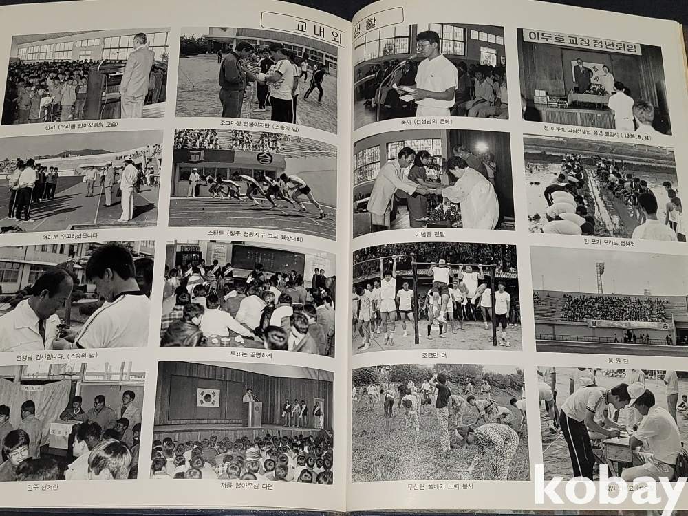 빈티지 세월 감이 느껴지는 1987년 충북고등학교 졸업앨범입니다.