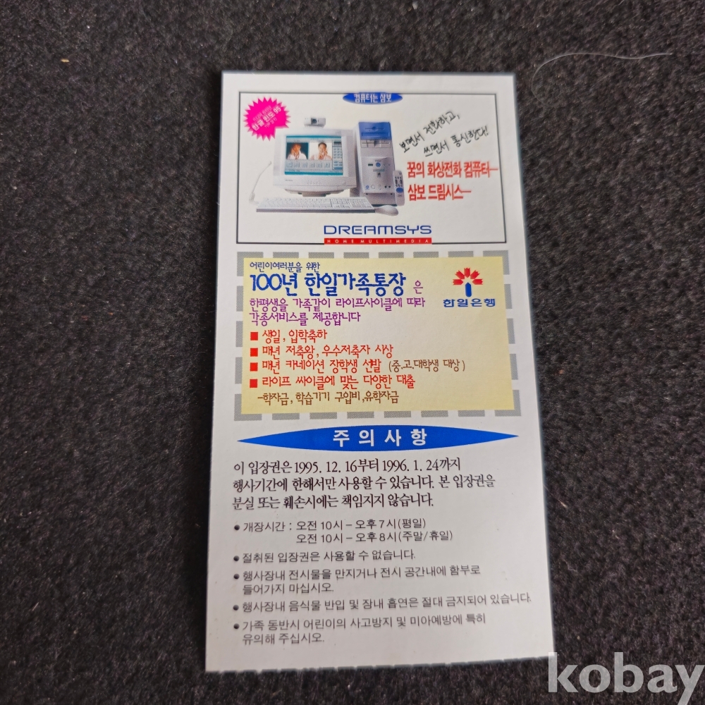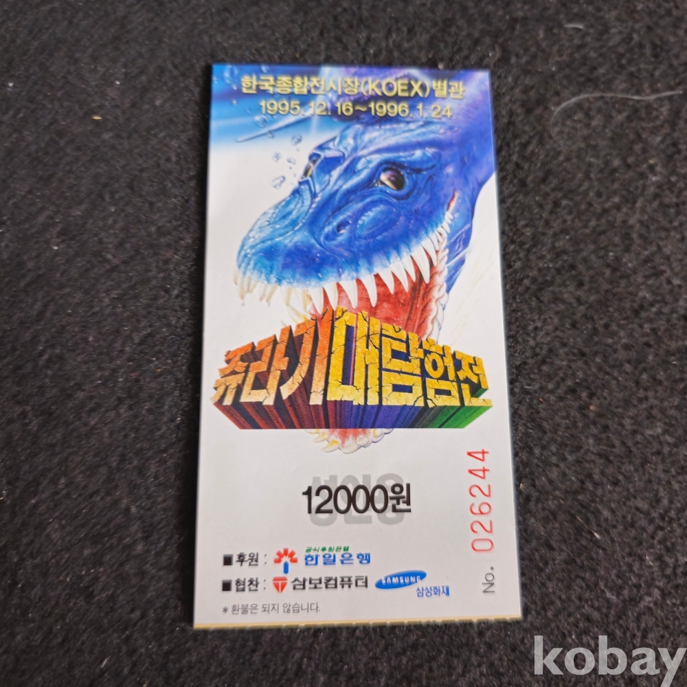 (((근현대사자료))) 1995년 쥬라기대탐험전 입장권 (한국종합전시관 (KOEX) 입장권 (후원 : 한일은행)