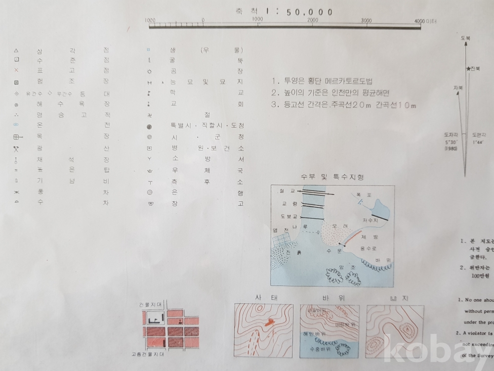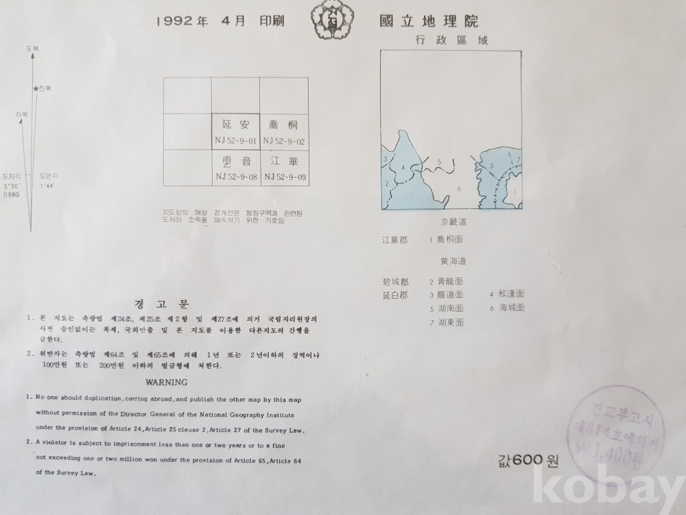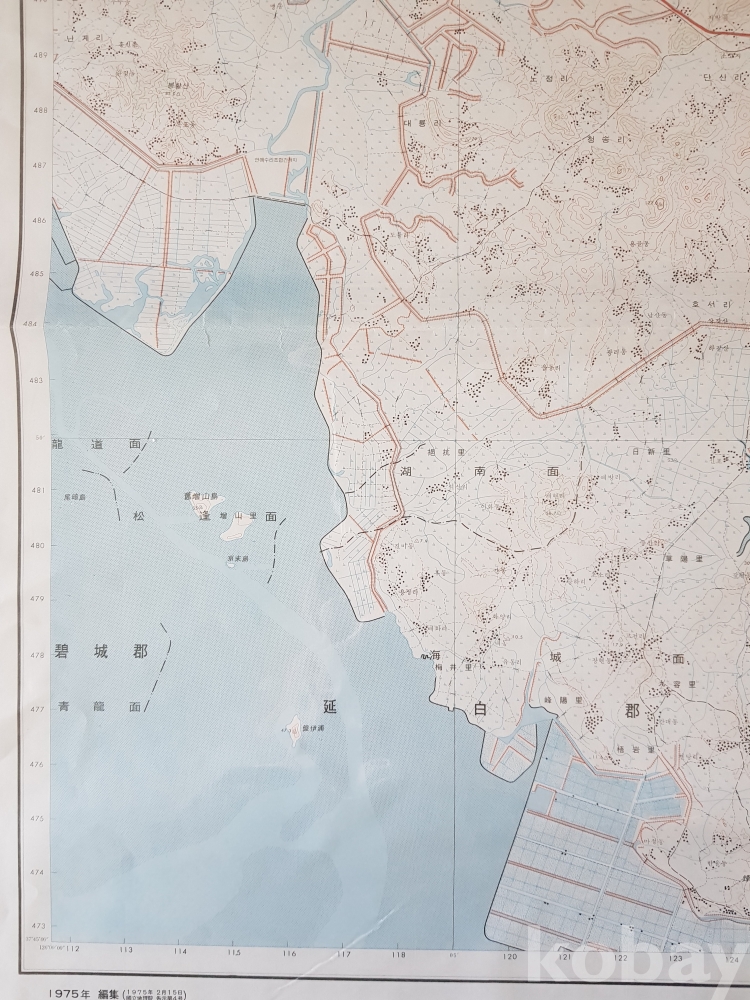 1975년 1:50,000 지도 (연안) 강화군, 벽재성, 연백군 수록됨