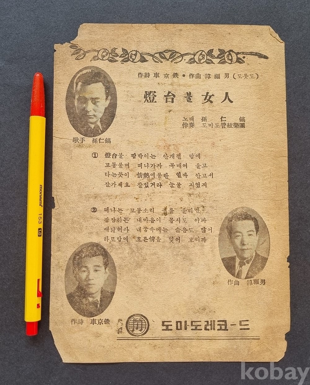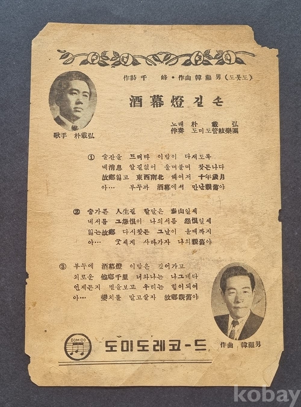ro-40 / 해방전 ~일제강점기 오리지널 sp음반 (돌판) 가사지 (희귀 돌판 가사지) "등대불여인, 주막등길손"