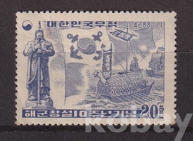- 미사용 1955년 해군 창설 10주년 기념우표