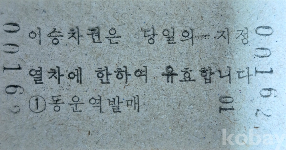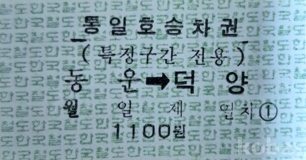 통일호 승차권 특정구간 동운-덕양 일반입니다.