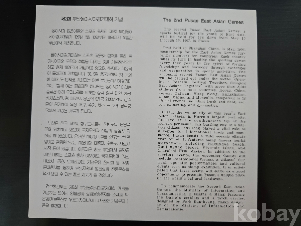 우표안내카드/ 97'5.10 제2회부산동아시아경기대회기념
