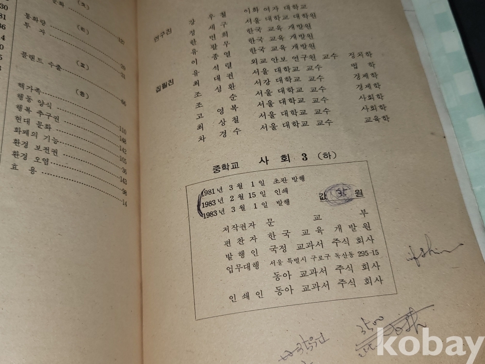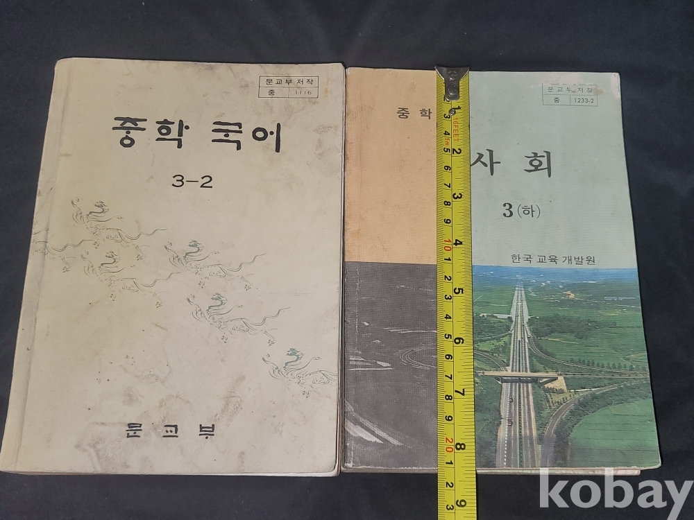 빈티지 세월 감이 느껴지는 1980년 중학교 가정 3, 1980년 중학 국어 3-2, 1982년 중학교 도덕 2 (하), 1983년 중학교 사회 3 (하) 등 옛날 교과서 4권 일괄입니다.