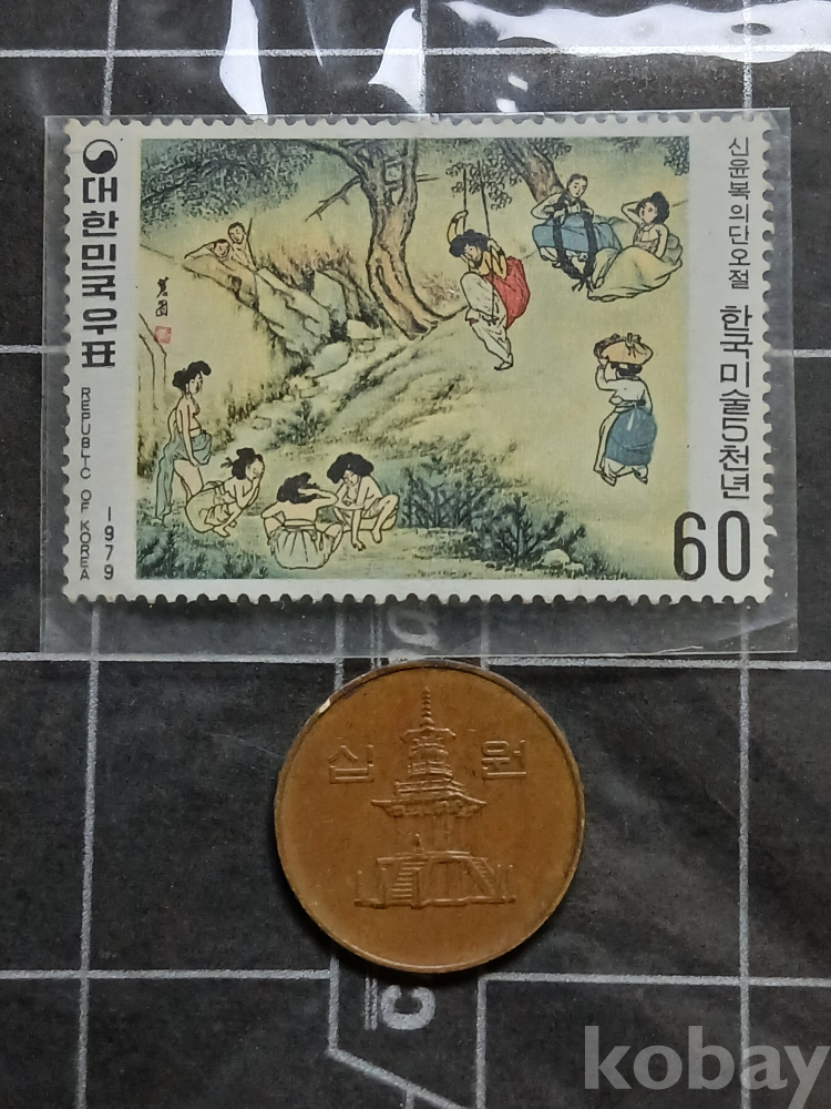 79년 신윤복의 단오절 도안 우표 액면가 60원 未사용품