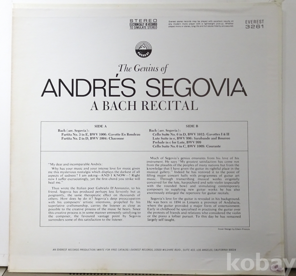 Andrés Segovia – The Genius Of Andrés Segovia - A Bach Recital
