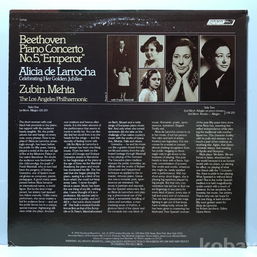 LP 84,020-42 Beethoven Piano Concerto No.5, Emperor Alicia de Larrocha -Zubin Mehta . 자켓 EX+ 알판 NM 79 년제작 수입반