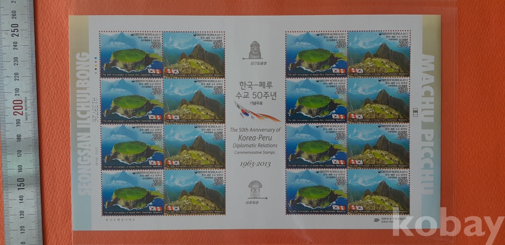 2013 한국 - 페루 수교 50주년 270원 16매 전지 입니다.