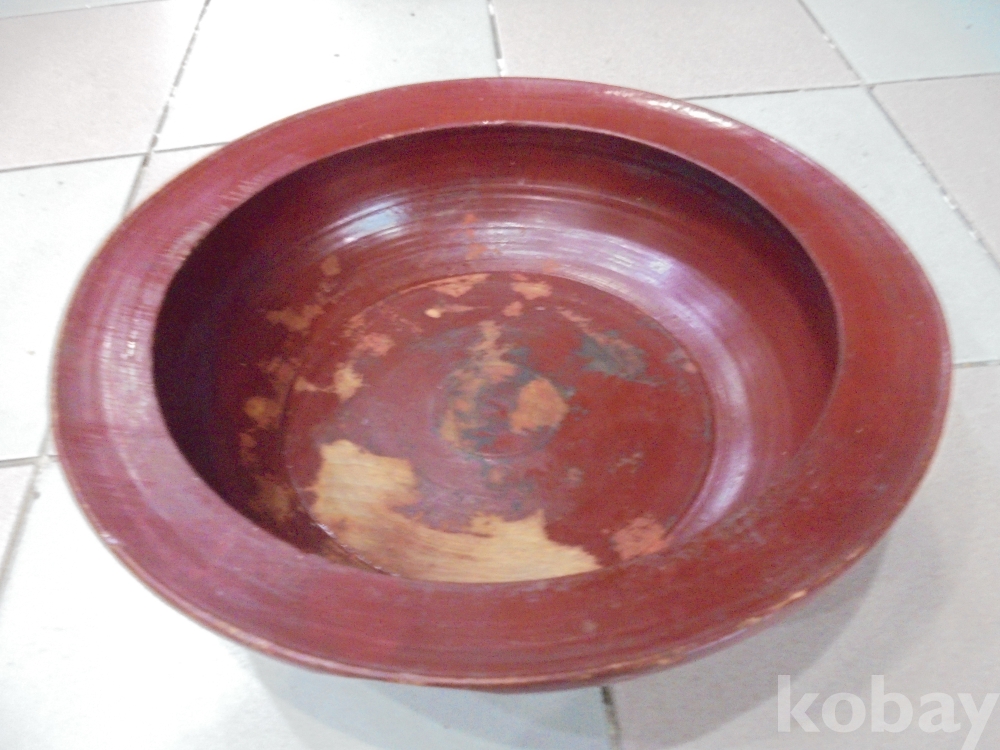 피나무로 만들고 오래되여도 튼데없고 완벽한 안에 주칠이벗겨진데있는 둥글고 예쁜 오래된 토성같은 위성함지