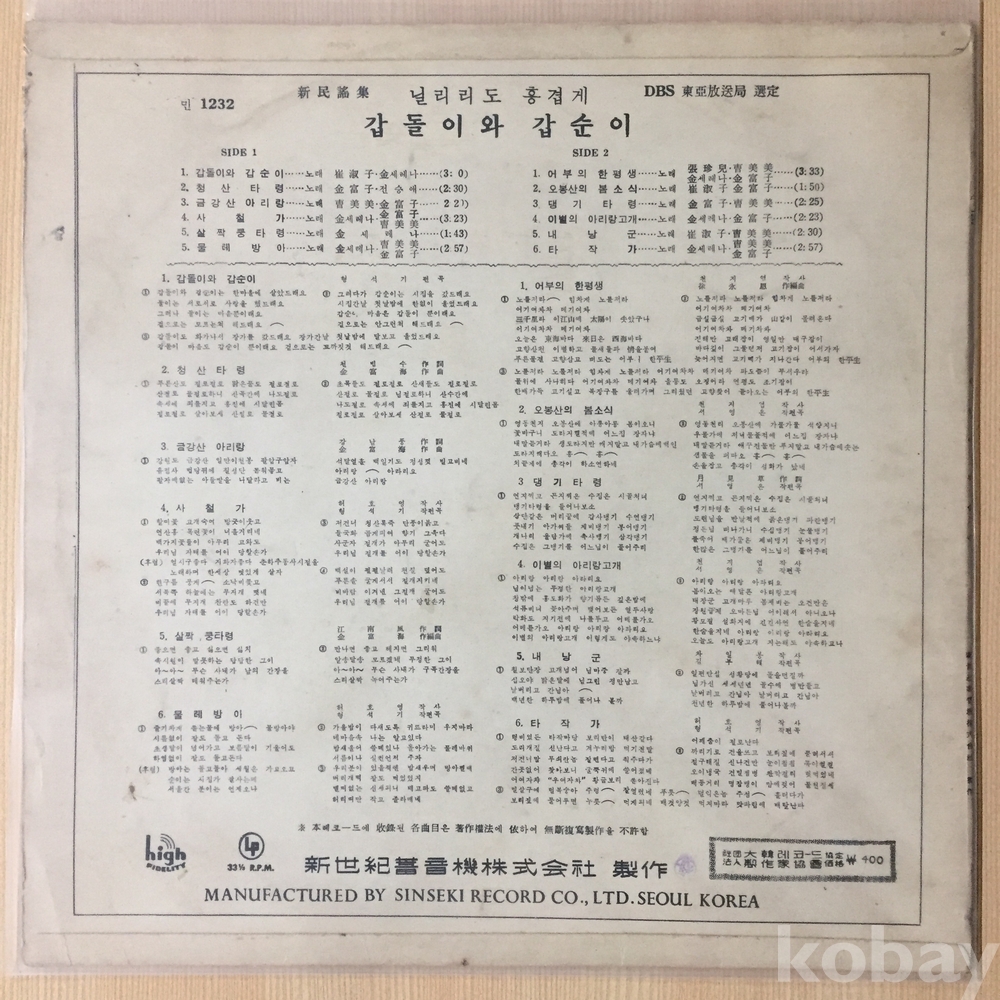 ⊙ 19??년 / 신세기레코드 - 민 1232