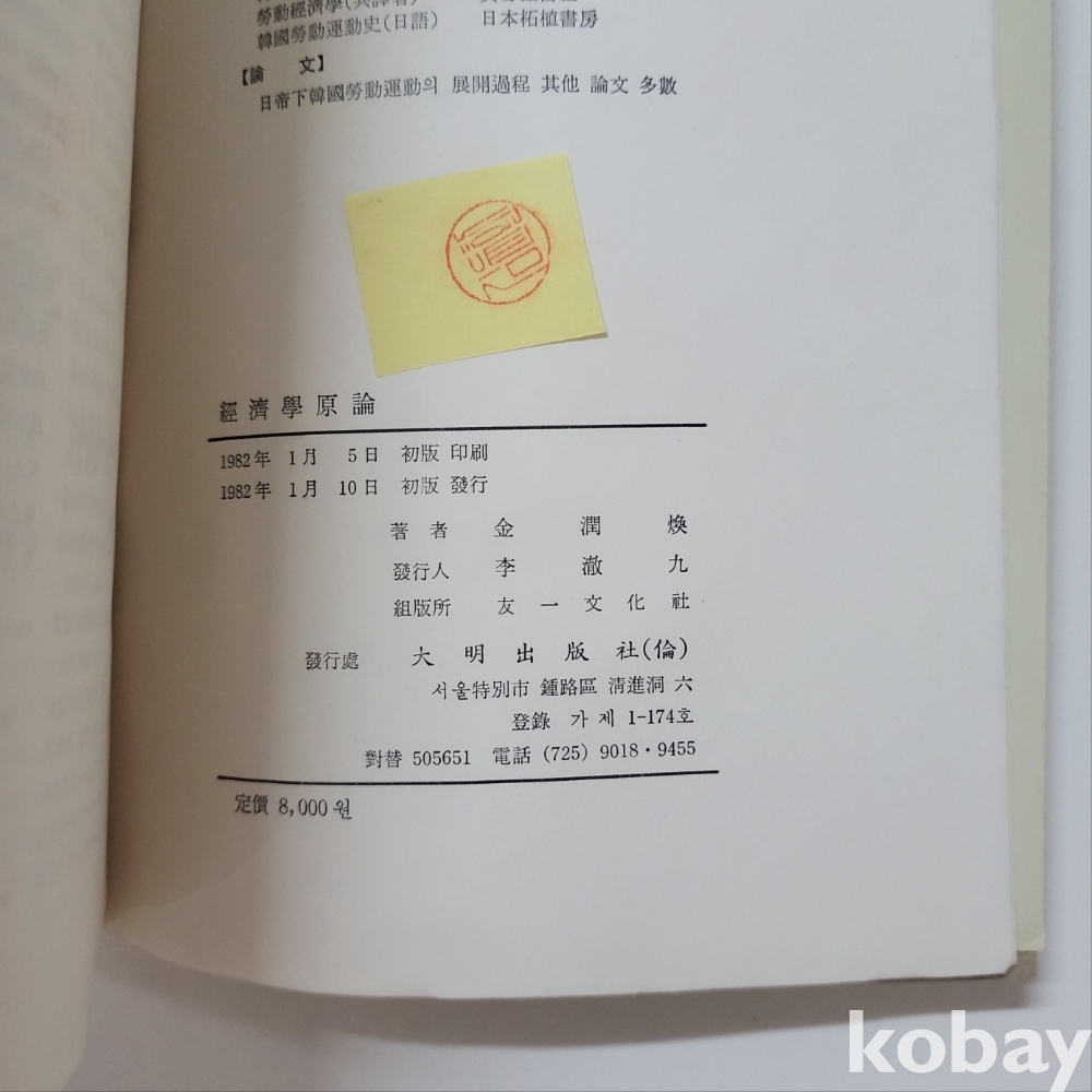 [천원경매] 1982년 대명출판 발행 경제학원론~ 시대 좋은 자료책자 입니다.