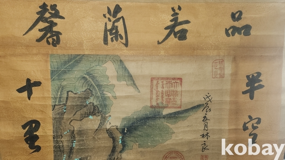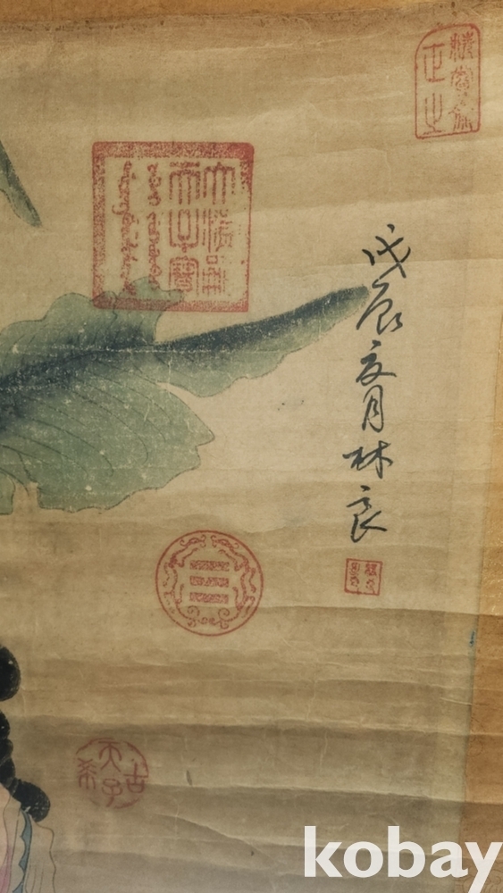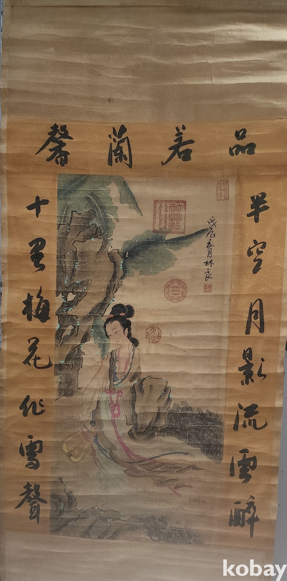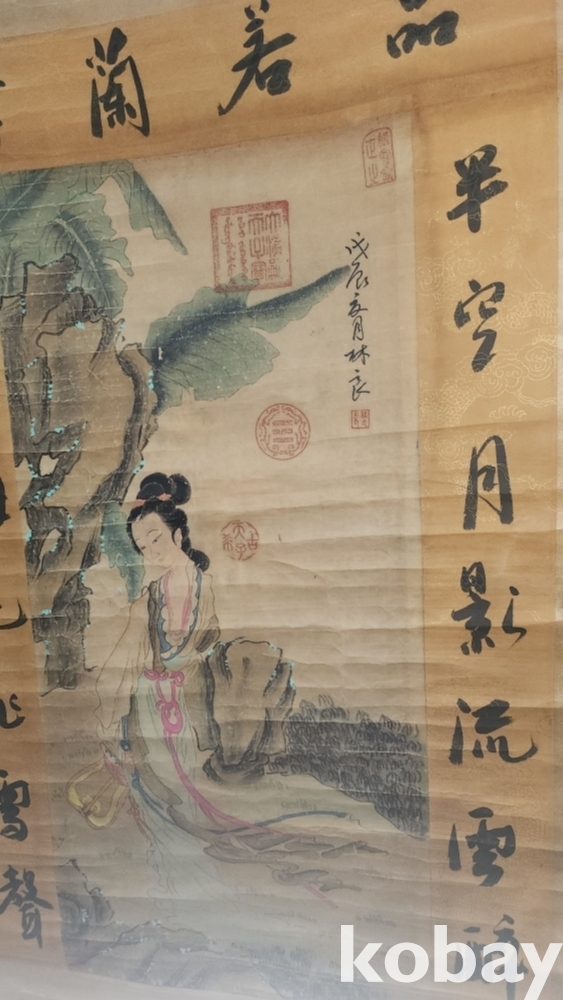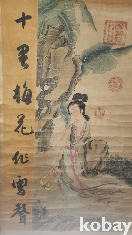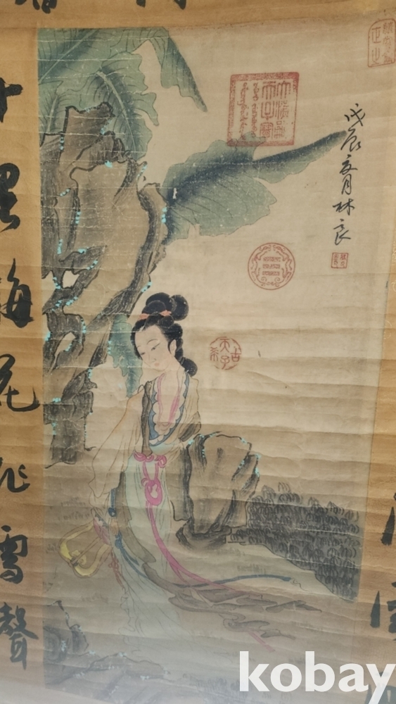 중국 유명화가 임량 (林良) 종이에 채색한 미인도 족자입니다,