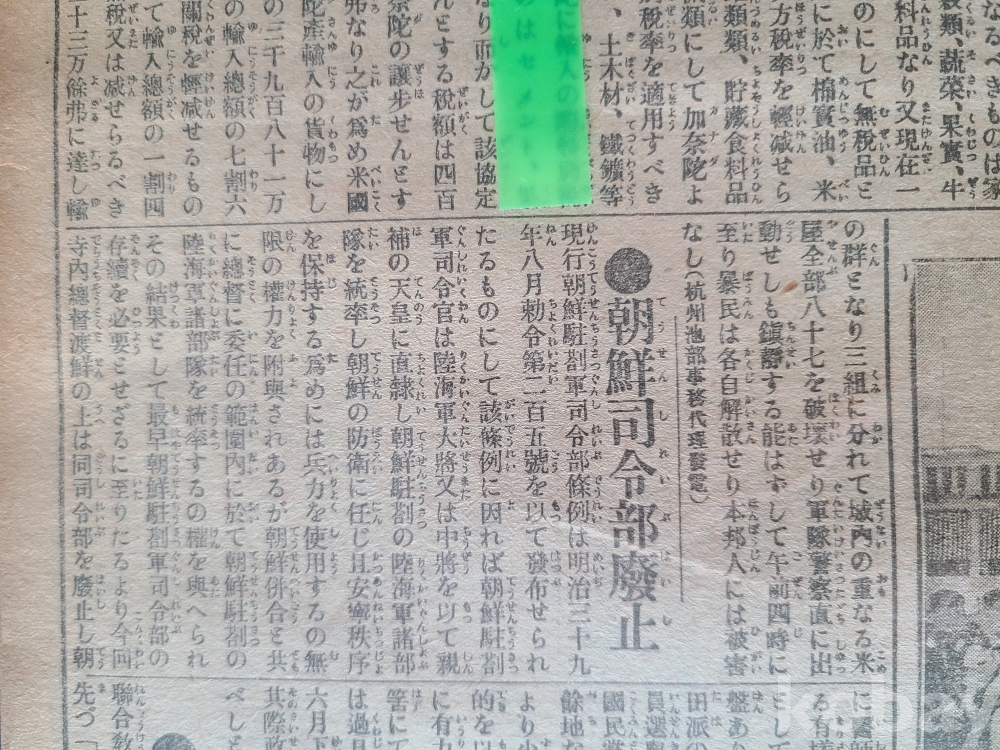 朝鮮司令部廢止 기사가 실린 1911년5월9일 東京日日新聞