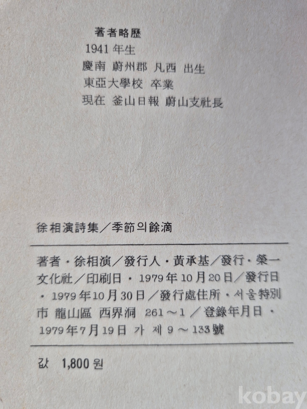1979년 발간한 첫 시집 『季節의 餘滴』