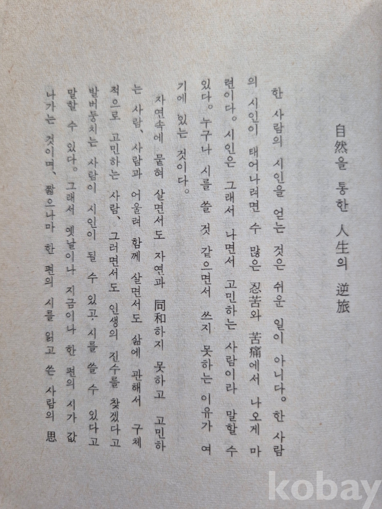 자연 속에 동화하면서 인생을 관조하는 삶의 의지 묘사.