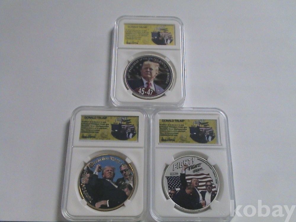 사진이미지와 같이 미국 대선 트럼프 3종 기념주화세트를