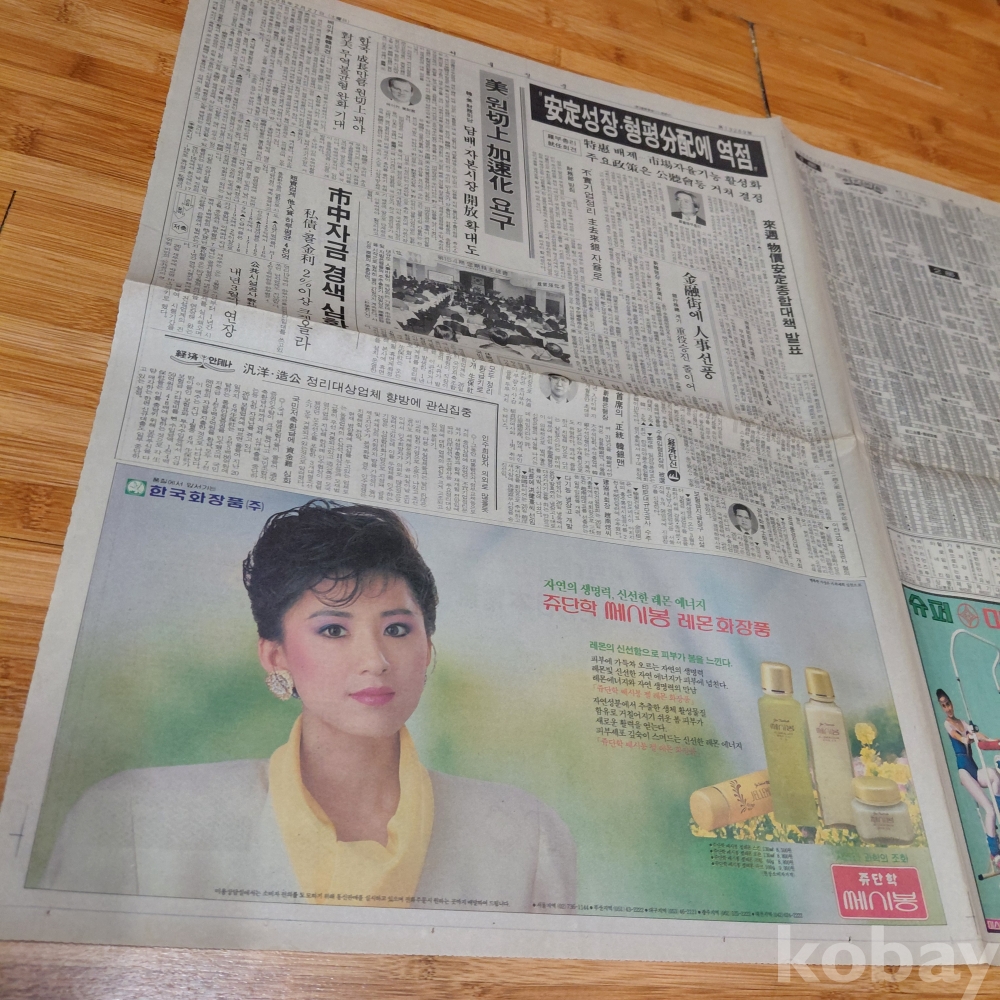 한국화장품 쥬단학 쎄시봉 광고 모델 톱탈렌트 김희애 서울신문 88년2월27일 올려드립니다