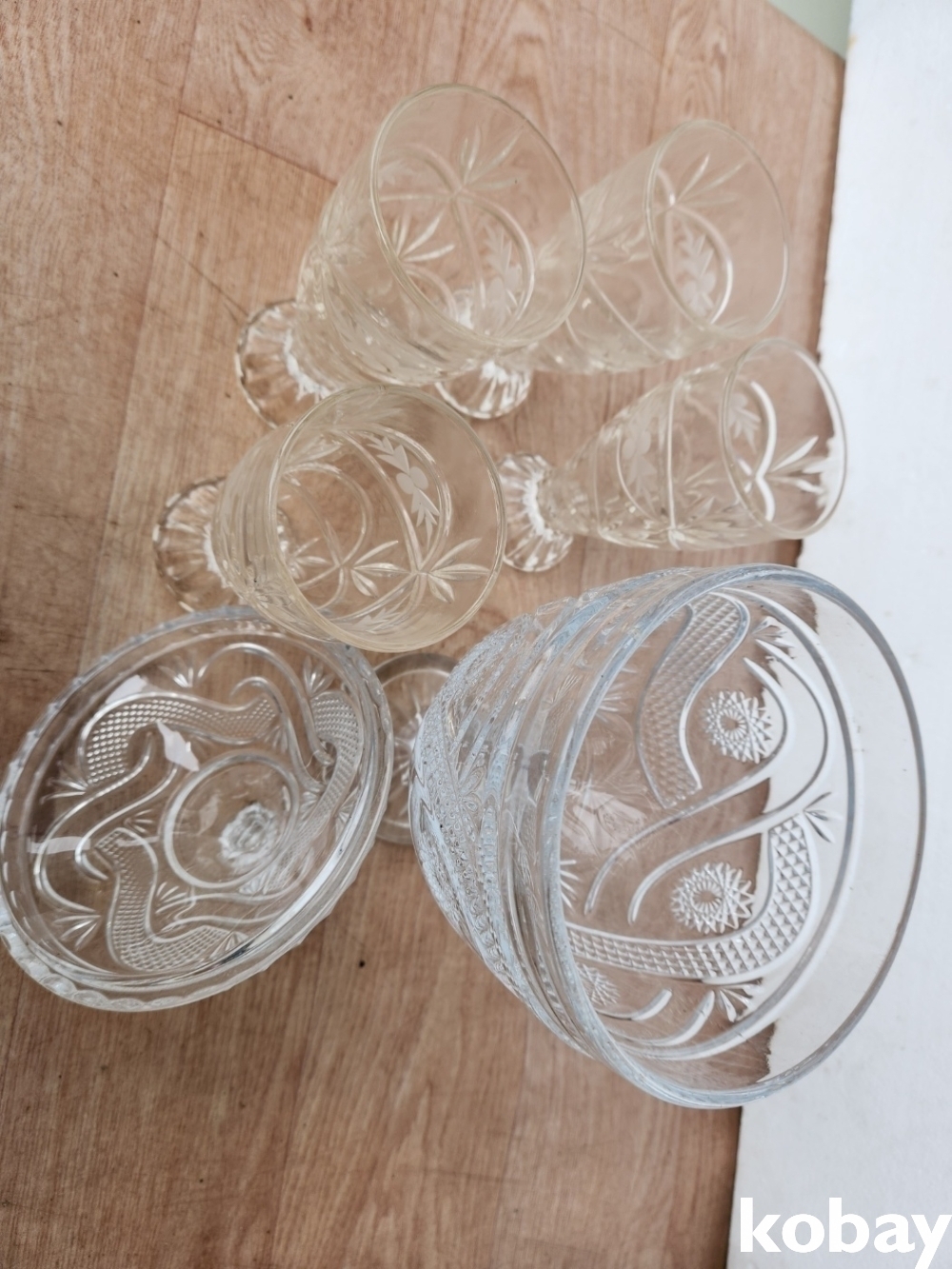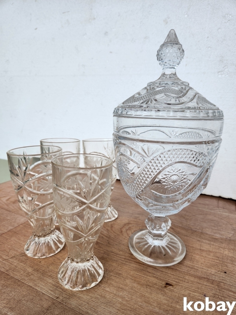 묵직한 크리스탈 용기와 컵 4개 입니다.