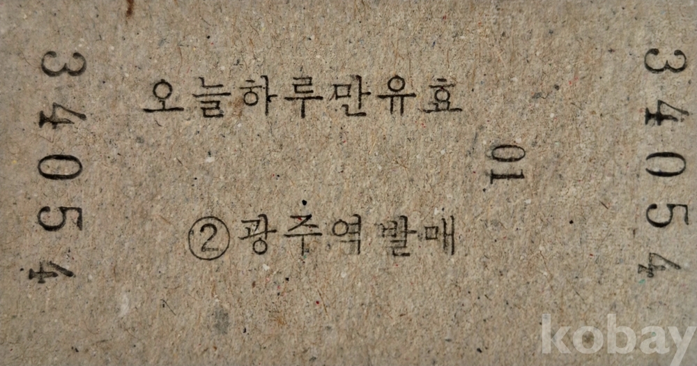 신형 비둘기호 승차권 광주-석정리 일반 견본권입니다.