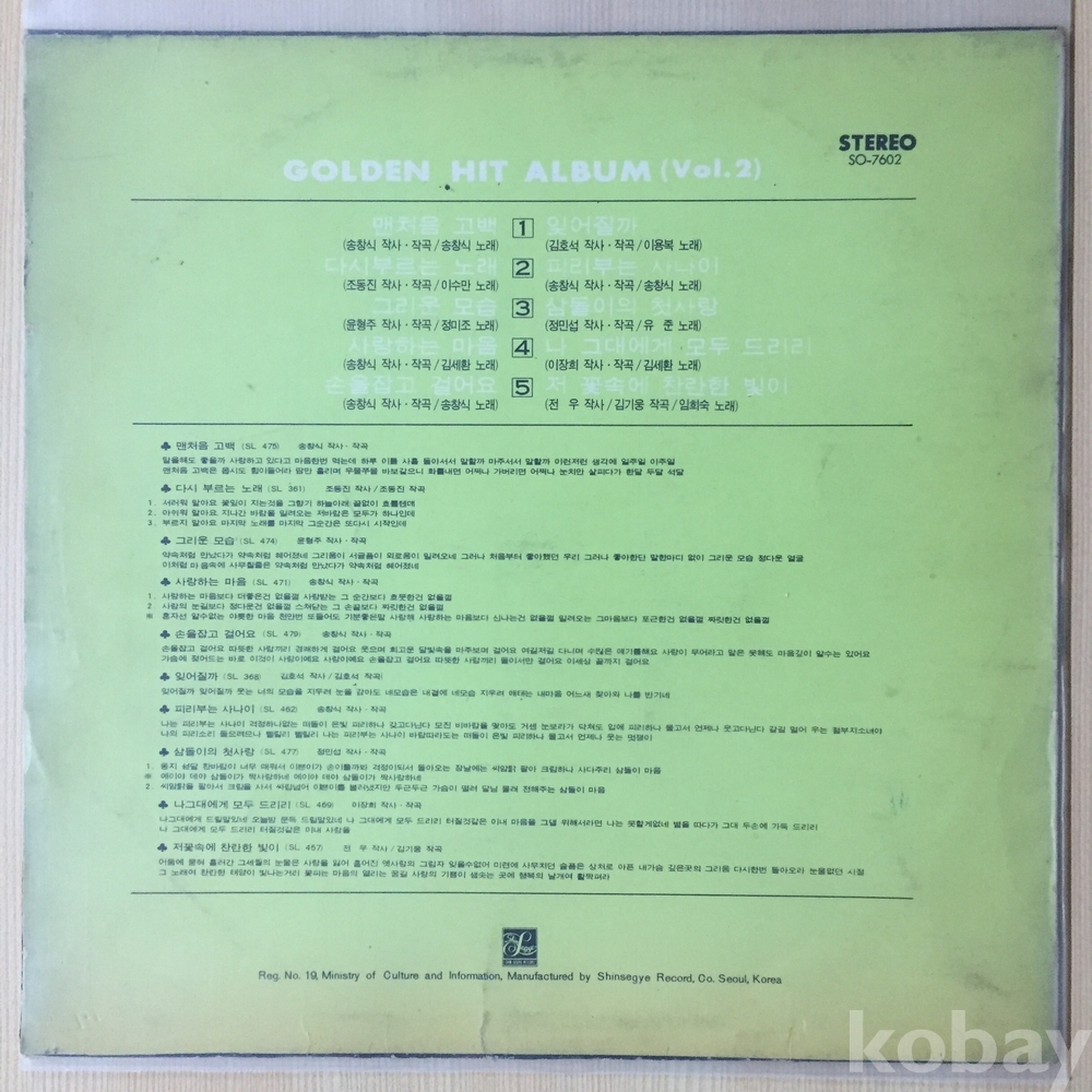 . 가요음반 대부분은 휘어짐이나 손상을 방지하기 위해 무지싱글자킷을 하나 더 사용하여 보관되었던 음반들입니다.