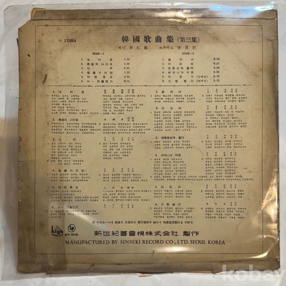 EX : 약간의 마모, 모서리 찢김 존재 음반상태