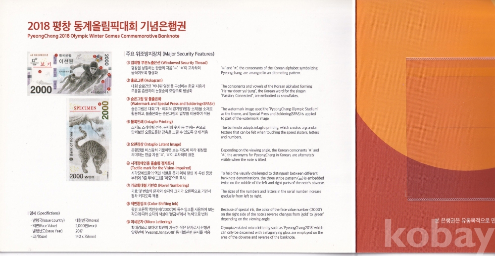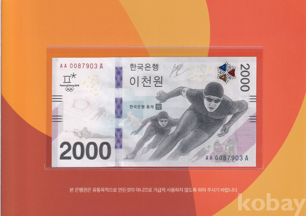 평창올림픽 기념 지폐 AAA, AAB권으로 발행하였으며,
