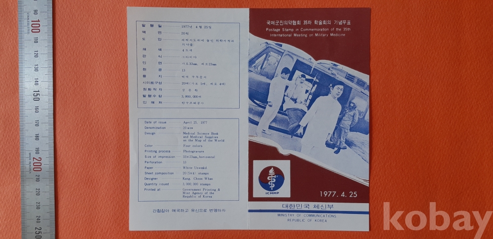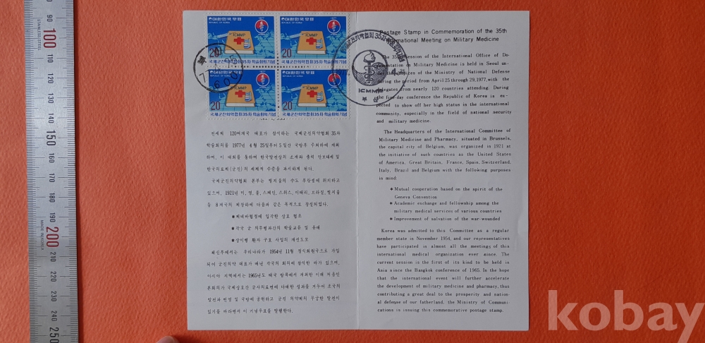 국제군진의약협회 35차 학술회의 기념(우표 4매 첩부) 안내카드 입니다.