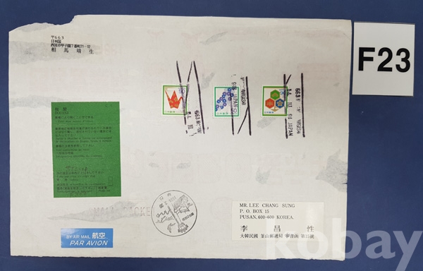 **** 1994년 일본 →한국 실체(대형봉투 엔타컷트)*부산 관광인