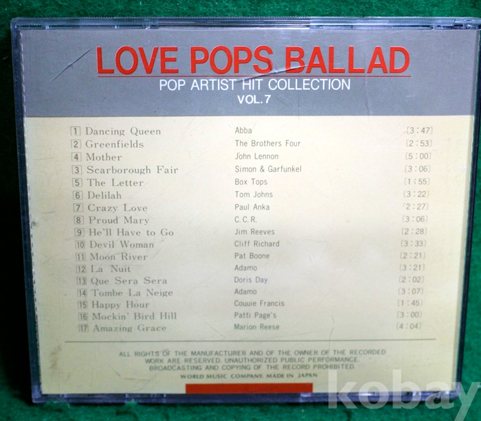 (일본제작 CD) Love pops ballad Vol.7 - Dancing Queen / Greenfields / Scarborough Fair...