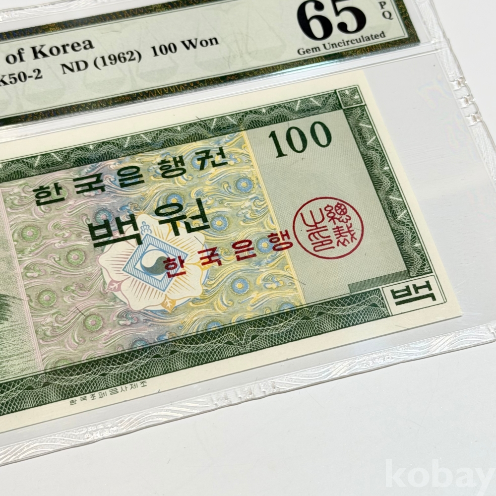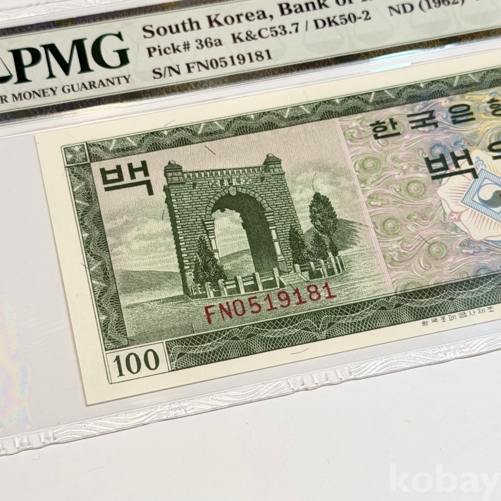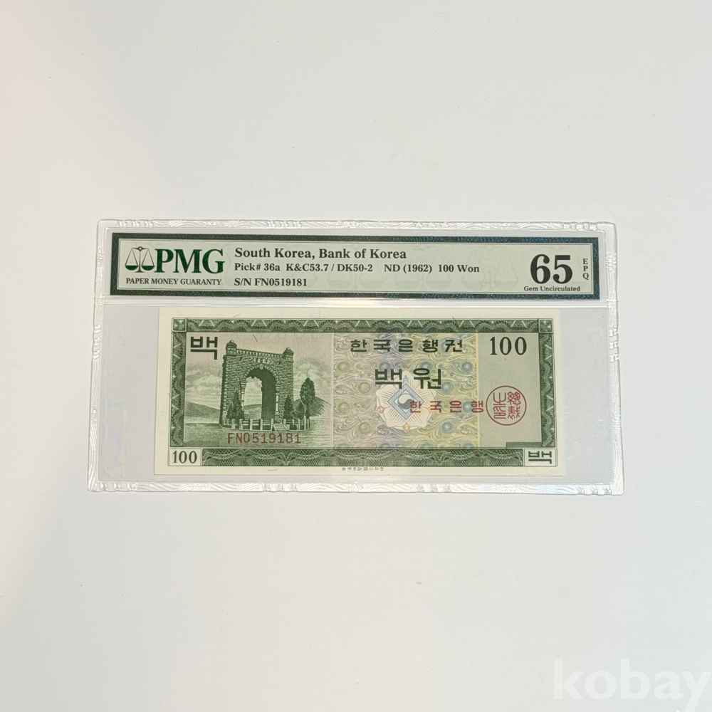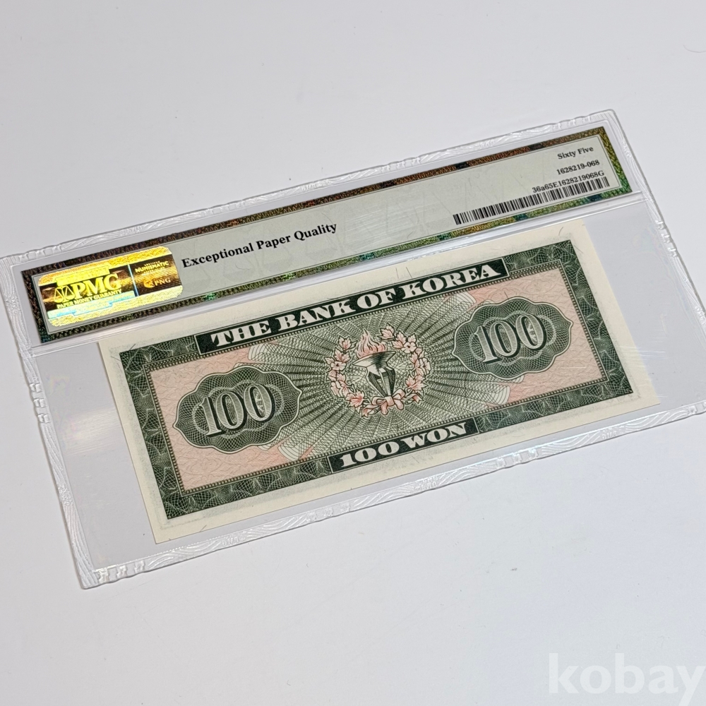 한국은행 100원/ 영제 백원 FN기호 PMG 65등급